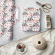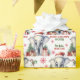 Le motif répété sur ce papier d'emballage de Noël est d'un mignon éléphant gris qui porte un chapeau de Père Noël rouge et blanc. L'éléphant se dresse au milieu des pins et des cadeaux de vacances aux couleurs vives. Le texte rouge et vert dit MERRY CHRISTMAS", avec le nom de votre enfant et votre signature ci-dessous. Les autres images incluses dans la motif sont des flocons de neige et des sucres de canne décoratifs rouges.