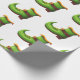 Papier d'emballage blanc avec un motif de bottes leprechaun vert et jaune. Illustré par Patricia Alvarez.