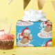 Pain d'épices de Noël homme avec casquette du Père Noël en splash de lait blanc sur arrière - plan d'aqua avec texte Happy Holidays.