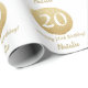 Joyeux 20e anniversaire Parties scintillant d'or et papier d'enveloppement blanc avec nom personnalisé. Pour plus de personnalisation, cliquez sur le bouton "Customiser" et utilisez notre outil de conception pour modifier ce modèle.