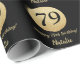 Happy 79th Birthday Black and Gold Parties scintillant Wrapping Papier avec nom personnalisé. Pour plus de personnalisation, cliquez sur le bouton "Customiser" et utilisez notre outil de conception pour modifier ce modèle.