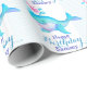 Papier mignon d'emballage cadeau d'anniversaire, comportant l'eau de giclement de coeur de baleine mignonne. Bleu turquoise d'Aqua et et papier d'emballage d'anniversaire fait sur commande pourpre. Personnalisez avec votre nom et salutation. Lit actuellement le joyeux anniversaire Sammy. Une grande manière de customiser votre cadeau d'anniversaire. Uniquement conçu par Sarah Trett.