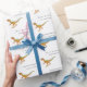 Papier cadeau personnalisé avec un nom de garçon drôle joyeux anniversaire Dinosaure vélociraptor. Motif de vélociraptor dino Raptor effrayant et amusant avec une typographie moderne blanche Papier Cadeau