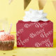White Happy Birthday texte dans une police amusante sur arrière - plan rouge. La couleur Arrière - plan peut être modifiée. L'angle du texte peut être ajusté.