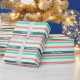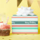 Gardez ce rouleau polyvalent de papier cadeau à portée de main. pour les anniversaires à travers l'année. Avec des rayures chic dans la menthe rafraîchissante, la pêche, blanc, orange et turquoise, le motif répétitif inclut le salut "Joyeux anniversaire" dans la typographie de script. Lumineux, coloré et dans l'esprit de fête, le papier d'emballage fait un choix élégant.