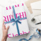 Papier Cadeau Joyeux Anniversaire Monogramme Nom Blanc Hot Rose
