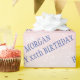 Dites "Joyeux Anniversaire" à n'importe quel âge avec un nom personnalisé en texte bleu sur l'ombre arrière - plan rose et bleu.