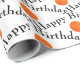 Papier Cadeau Joyeux Anniversaire Orange Pickleballs Sur Blanc