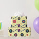 Vinyl Music Wrapping Paper est un papier d'emballage rétro coloré et brillant avec un message d'anniversaire heureux et des disques vinyles. Cette enveloppe est livrée dans un arrière - plan jaune vif avec des disques vinyles rouge, jaune, bleu, gris et violet éparpillés partout.