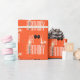 White Happy Birthday texte sur arrière - plan orange avec ballons noirs, confettis, scintillants et bougies. La couleur Arrière - plan peut être modifiée.