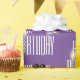 White Happy Birthday texte sur arrière - plan violet avec ballons noirs, scintillants et bougies. La couleur Arrière - plan peut être modifiée.