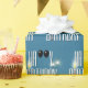 White Happy Birthday texte sur l'arrière - plan bleu avec ballons noirs, scintillants et bougies. La couleur Arrière - plan peut être modifiée.