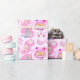 Ce papier d'emballage coloré sur le thème du chat d'anniversaire comprend un chat mangeant un gâteau arc-en-ciel, un autre chat prêt à frapper une pinata, et un chat se relaxant sur son lit en portant sa tiara d'anniversaire. Le design original de Daphsam que les enfants qui adorent les chats trouveront merveilleusement amusant tout en recevant des cadeaux !
