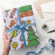 Étendez la fête avec ce papier d'emballage vibrant qui présente un assortiment coloré d'ornements, de lumières scintillantes et de phrases festives. C'est la meilleure façon de faire briller vos cadeaux
