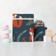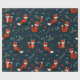 Enveloppez vos cadeaux de vacances avec ce papier d'emballage de Noël avec du renard mignon, des flocons de neige, des branches de sapin et des baies Holly sur un arrière - plan bleu. Vos cadeaux auront l'air très joyeux sous le sapin de Noël.