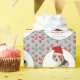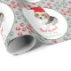 Noël et les fêtes Chiot et Pawprints papier d'emballage personnalisé. Ce papier d'emballage est de couleur argent avec des empreintes de pattes rouges et verts. Le mignon chiot est un chiot beagle portant un chapeau de Noël de Noël. Le mignon chien est assis dans un cercle blanc de bauble de Noël. Il y a du texte personnalisé que vous pouvez ajouter dans votre salutation de saison préférée. Actuellement il lit Happy Howliday, en continuant avec le thème chien chiot. Il y a un deuxième espace pour le texte personnalisable ci-dessous pour les noms, les messages, les citations, ou n'importe quel costume.