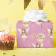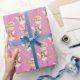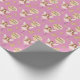 Joli motif d'une fée tenant un ballon avec des papillons. Texte "Joyeux Anniversaire" en lettres de script noir. Le design est sur un arrière - plan rose. Ce papier d’emballage cadeau fera certainement de la présentation cadeau de n’importe quel enfant un cadeau très spécial.