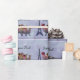 Illustration graphique de trois poules françaises ornées pour les vacances sur leur chemin à Tour Eiffel sous la lune de Paris. Les mots Joyeux Noel sont Joyeux Noël en français. Enveloppez votre cadeau en ce document de haute qualité et brillant et éclairez vers le haut de la saison des vacances.