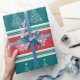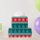 Illustration de Noël joyeuse avec décoration d'arbre de Noël et de flocons de neige sur arrière - plan rayé rouge, blanc, bleu et turquoise