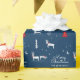Ce motif boisé de Noël est une jolie scène illustrée de cerfs et d'arbres au-dessus d'un arrière - plan bleu marine avec un modèle texte à personnaliser avec le nom ou le nom de famille de votre être cher.