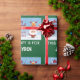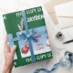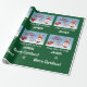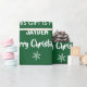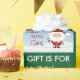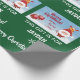 Papier d'emballage de Noël mignon et élégant pour les enfants avec Père Noël dans son costume rouge (tenant un sucre de canne) et son renne préféré, Rudolph, derrière lui. Texte : "Joyeux Noël ! Ce cadeau est pour Jayden du Père Noël" — assurez-vous de personnaliser le nom de l'enfant. Vous pouvez également modifier le salutation, si vous le souhaitez. L'emballage cadeau comprend également deux billes rouges avec des flocons de neige et un paysage enneigé. Sur un arrière - plan vert de Noël.