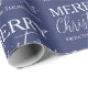 Papier Cadeau Joyeux Noël Calligraphie Script Bleu Whimsical