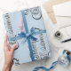 Joyeux Noël Typographie Motif Élégant Chic Soft Baby Blue et Silver Grey Texte Glossy Cadeau Papier de Vacances Saison de Noël Cadeaux