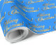 Papier Cadeau Joyeux Noël Elégant Cerulean Blue Gold Script