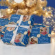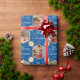 Faites vos cadeaux de vacances extra spécial avec papier d'emballage photo personnalisé! Ce modèle modifiable est personnalisé avec quatre de vos photos préférées, et le nom du destinataire, votre nom de famille, ou l'année des fêtes. Il présente des cadres d'images hexagonales, dressés contre un arrière - plan festif de flocons de neige et d'étoiles, ainsi que l'expression "Joyeux Noël". Un design élégant alliant typographie traditionnelle et design géométrique classique. Parfait pour les photos d'enfants, de famille, d'amis et d'animaux de compagnie ! Cette enveloppe cadeau motif sans soudure est disponible avec une finition mate ou brillante. Couleurs imprimées : bleu, blanc et or.