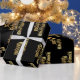 Papier Cadeau Joyeux Noël Étoiles Typographie Black Gold Chic