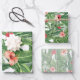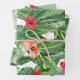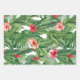 Des feuilles verts et des fleurs rouges d'hibiscus et de gingembre décorent ce papier d'emballage pour un thème tropical botanique d'emballage cadeau de Noël.