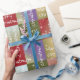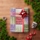 Enveloppez vos cadeaux de vacances avec ce papier d'emballage saisonnier avec voeux de Noël sur un arrière - plan coloré. Vos cadeaux auront l'air très joyeux sous l'arbre.