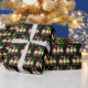 Festive noir, rouge et vert dessiné à la main gnomes de dessin animé et flocons de neige Happy Holidays cadeau enveloppé.