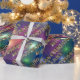 Joyeux Noël Golden Parties scintillant Typographie Motif sur Colorful Stars Arrière - plan Élégant Cadeau Papier Noël Cadeaux Cadeaux Cadeaux Cadeaux
