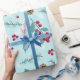 Papier Cadeau Joyeux Noël Holly Berry Fir Branches Rouge Bleu