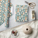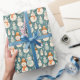 Un emballage cadeau de Noël pour vos cadeaux de Noël qui a un arrière - plan fantaisiste avec des bonhommes de neige en or et turquoise.