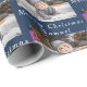 Personnalisé, Joyeux Noël, photo collage, nom, moderne, élégant, bleu marine et blanc, Noël, papier d'emballage d'anniversaire. Parfait pour lui.