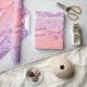 Personnalisez les noms et Joyeux Noël, ou message, en texte fuchsia sur arrière - plan pêche avec parties scintillant et flocons de neige; parfait pour envelopper ce cadeau spécial. Cliquez sur "Modifier la conception" pour modifier les couleurs et les styles de type.