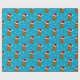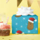 Répéter le motif d'une patate de Noël heureuse dans un chapeau de Père Noël. Fond bleu avec des flocons de neige blancs.