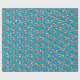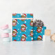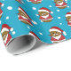 Répéter le motif d'une patate de Noël heureuse avec un chapeau et un costume de Père Noël et portant une moustache et une barbe blanches. Fond bleu avec beaucoup de flocons de neige blancs.