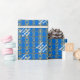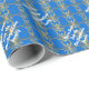 Personnalisez facilement cet élégant motif de flocon d'hiver bleu et or sophistiqué et Joyeux texte de Noël avec votre occasion, nom ou autre texte, vous pouvez facilement changer la couleur arrière - plan rouge clair d'un choix de plus de 200 couleurs, vous pouvez également changer le style ou la taille de la police. VEUILLEZ NOTER que l'or n'est pas métallique.