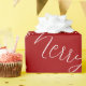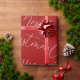 Papier d'emballage rouge Joyeux Noël moderne et élégant. Police blanche calligraphie décorative manuscrite.