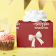 Un arrière - plan rouge classique, un texte crème et un arc. Joyeux Noël est écrit avec une police de style rétro. Personnaliser et ajouter un nom