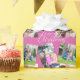 Joyeux Noël Script Moderne 3 Photo Enveloppement personnalisé Papier cadeau Wrap comprend le texte "Joyeux Noël" dans la typographie de script de calligraphie manuscrite moderne avec trois de vos photos préférées sur un arrière - plan rose foncé. CONSEIL PHOTO : centre photos avant de télécharger sur Zazzle. Parfait pour Noël et emballage cadeau de vacances. Conçu par ©Evco Holidays www.zazzle.com/store/evcoholidays