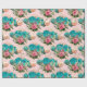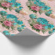 Papier Cadeau Joyeux Noël Script Rose or rose bleu vert