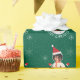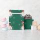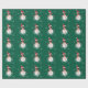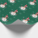 Papier d'emballage de Noël drôle et mignon avec photo personnalisée comme la tête du bonhomme de neige, flocons de neige sur un arrière - plan vert festif. Sous le bonhomme de neige est écrit Joyeux Noël avec typographie blanche festive.