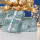Joyeuses décorations d'arbres de Noël enveloppant du papier pour elle. Un design élégant et élégant. Tendance, vert, turquoise, blanc gris argenté, couleurs pastel. Enveloppement de cadeaux d'antiquités vintages style vacances. Copyright photo Marg Seregelyi Photography.