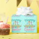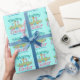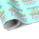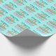 Beau papier d'emballage de Pâques Joyeux pour un chrétien célébrant Jésus-Christ se levant le dimanche de Pâques avec une écriture rose pastel et turquoise et croise au-dessus d'un champ de fleurs vert. Un joli emballage cadeau de vacances de Pâques personnalisé dans de jolies couleurs.