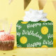 Message d'anniversaire blanc sur vert avec des boulettes jaunes. La couleur et le texte de l'Arrière - plan peuvent être modifiés.
