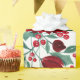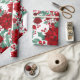 Papier Cadeau Joyeux rouge Poinsettia Fleurs Feuilles ivoire Aqu